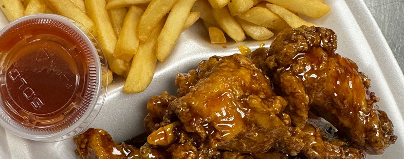 $2.00 per wing add-on $2.00 per extra sauce $2.00 for just flats $2.00 extra ranch pack FIRE FRIES w/LIT BONELESS CHICKEN $20.00 Choose your flavor- Original, Smokey BBQ, Buff Lemon Pepper, Kali Hot, Sticky Garlic Parmesan, Lit Honey, Lit Lemon Pepper, Sweet & Tangy, and OG Lemon Pepper SWEET & TANGY FRIES (w/out chicken) $15